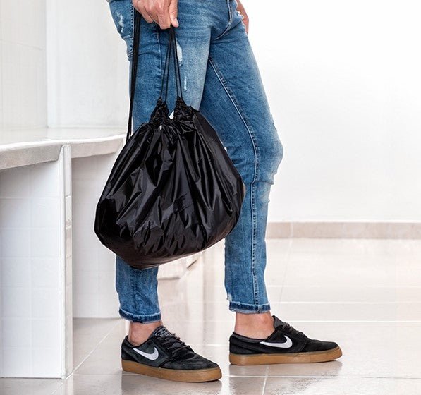 A changing room mat and waterproof bag. ideal for the gym. beach. swimming pool. etc. It has a very useful double function. as it opens up easily so you can stand on it and dry yourself comfortably. Afterward. the dirty and wet clothing can be placed inside and it closes easily by pulling the cord. As it is waterproof. it can be stored inside other sports or beach bags and rucksacks without worrying about wetting other items and clothing.