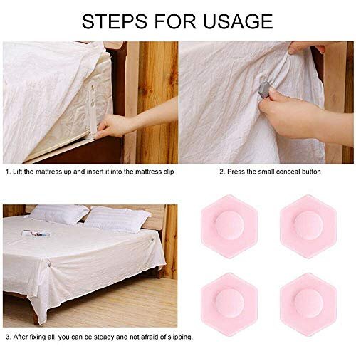 • Easy to install: These sheet clips have a non-slip design. simply insert the sheet holders under the mattress. press the button up to the upper hole and secure it.