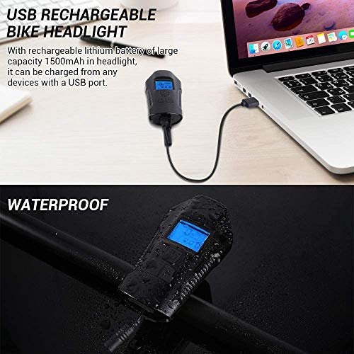 • 【USB Rechargeable Bike Headlight】– With rechargeable lithium-ion internal battery of large capacity 1500mAh in the headlight. it can be charged from any device with a USB port. Lasting 5-8 hours when full-charged. Compared with ordinary batteries. saving money and environmental friendly.