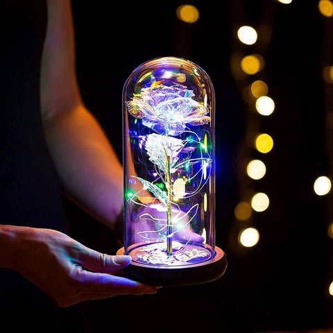 ✔ LOVELY COLORFUL ROSE: Astrose™ will never wither and die. The petals are embedded with tiny LED lights. just turn on the base switch. and the warm colorful lights illuminate the entire dome. It creates a romantic atmosphere.