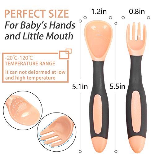 • 🍼PERFECT SELF-FEEDING FUNCTION: The silicone handle can be bent in any direction so that it allows babies to eat at various angles. increasing hand-eye coordination.