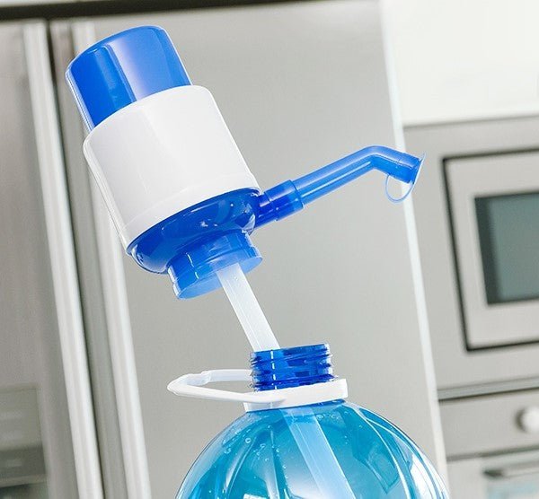 A manual water dispenser that is perfect for providing bottled water with total comfort and ease. This practical dispenser stopper screws into the bottle opening and is pressed to release the water using its effective pumping system. A simple way to avoid carrying heavy water bottles and the inconvenience of dispensing water by squeezing. which often causes accidental drips and spills.