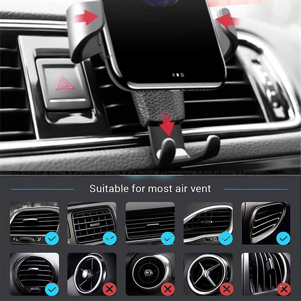• Easy to Handle: Tool-free installat this gravity air vent car phone holder . Simply clip it to the car air vent . then put down your smartphone in the car phone holder’s bracket . The car phone holder cradle will auto lock by gravity securely .