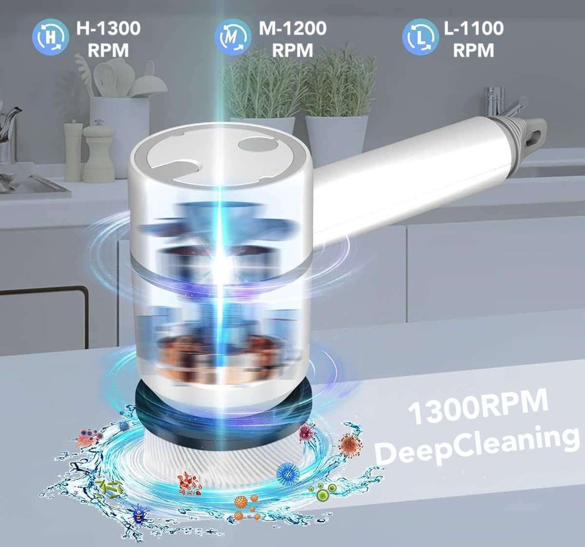 ✔ PORTABLE & CORDLESS: You can easily use it for cleaning any corner of the house. there will be no more plug and cable trouble. The ergonomic premium silicone grip can be held firmly even with sweaty or wet hands. ✔ 6 INTERCHANGEABLE BRUSH HEADS: JetBrush™ includes 6 different interchangeable high-quality brush heads for different scenarios to effectively remove grout and stains. You can use these different brush heads to clean bathrooms bathtubs. kitchens. stove tops. heavily oiled walls. slots. sinks. car wheels. floors. tumblers. windows. dishes. and so on.