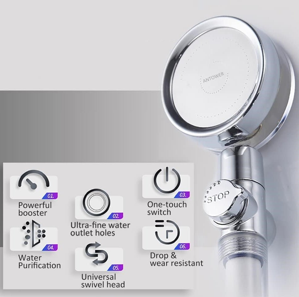 ✔ HIGH QUALITY ABS MATERIAL: The Turbo Propeller Shower Head is built to last. Its sleek and modern design adds a touch of elegance to any bathroom decor. Enjoy a durable and stylish showerhead that stands the test of time.✔ EASY TO INSTALL: No need for professional installation – JetFlo™ is designed for easy. tool-free installation. Simply attach it to any standard shower arm and enjoy immediate results. The filter is easily washable and replaceable. ensuring long-lasting performance and convenience.