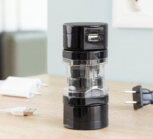 A complete and versatile universal power point adapter. Ideal for traveling and for problem-free use of electrical devices in many countries. Also includes USB connection. Its compact and detachable design takes up very little space and is very convenient and practical for taking anywhere easily. This adapter can be used in over 150 countries (except South Africa).